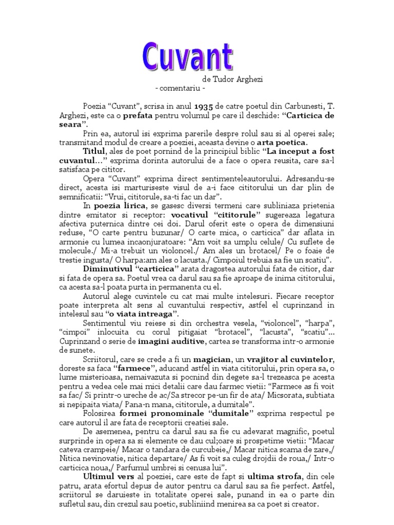 Cuvant De Tudor Arghezi Comentariu Ro